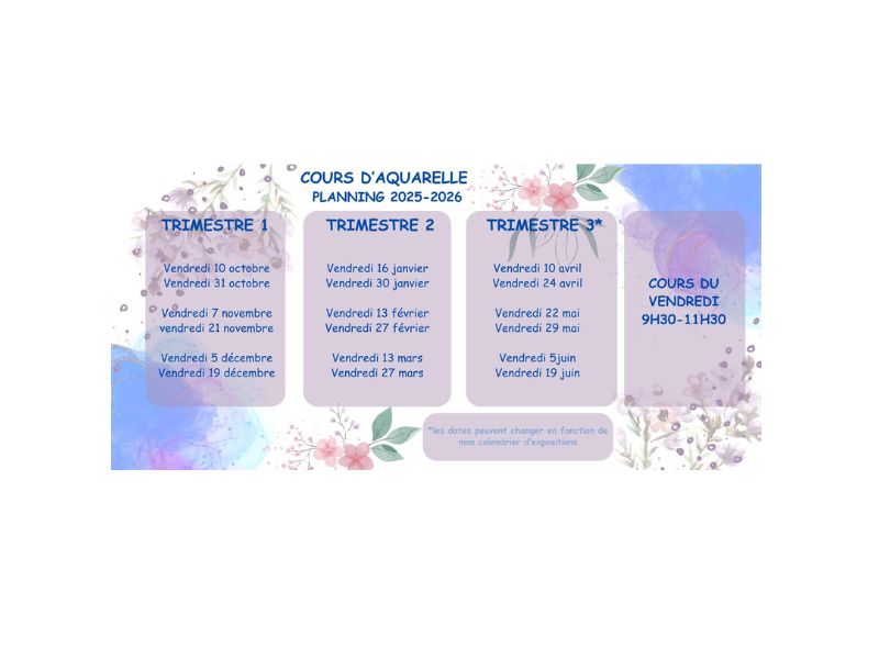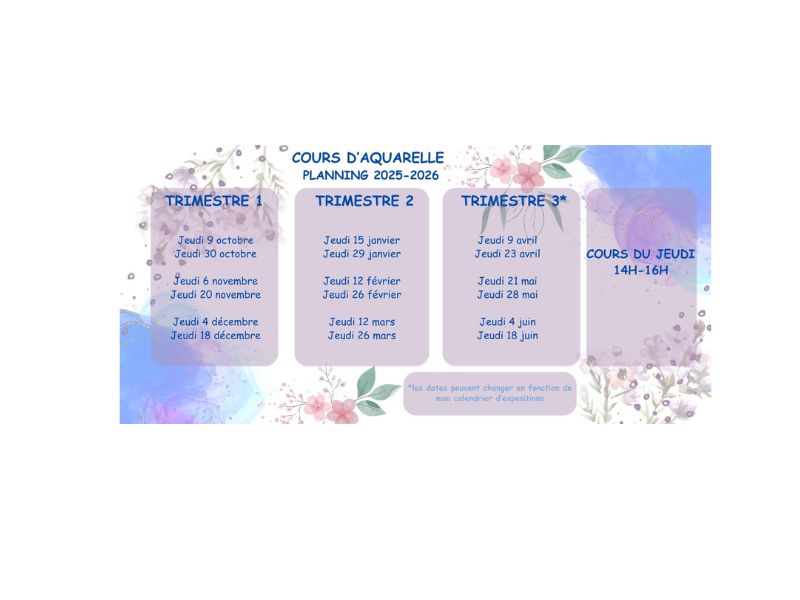 *quelques changements peuvent se produire en fonction de mon calendrier d'expositions